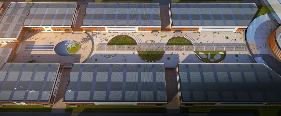 建设规模:总用地面积1050亩,总建筑面积91万平方米,功能涵盖办公、展示、会议中心、酒店、检测中心、服务中心、物流库房、生产厂房、宿舍等。