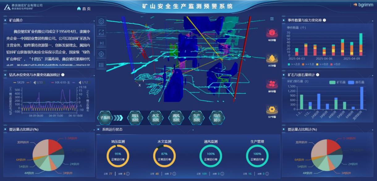 应用于新疆有色金属工业(集团)有限责任公司、云南驰宏锌锗股份有限公司、中国有色矿业集团有限公司等集团及下属矿山,实现了地、测、采、选、安环等多源数据协同与联动,形成了“分级负责、垂直管控、联防联控”的透明化管控模式