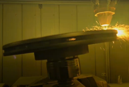 | 图4 刹车盘耐磨涂层高速激光熔覆过程 | 图5 熔覆前的刹车盘 | 图6 熔覆后的刹车盘 |