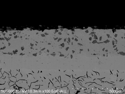 | 图7 熔覆后打磨完的刹车盘 | 图8 高速激光熔覆刹车盘耐磨涂层显微组织 |