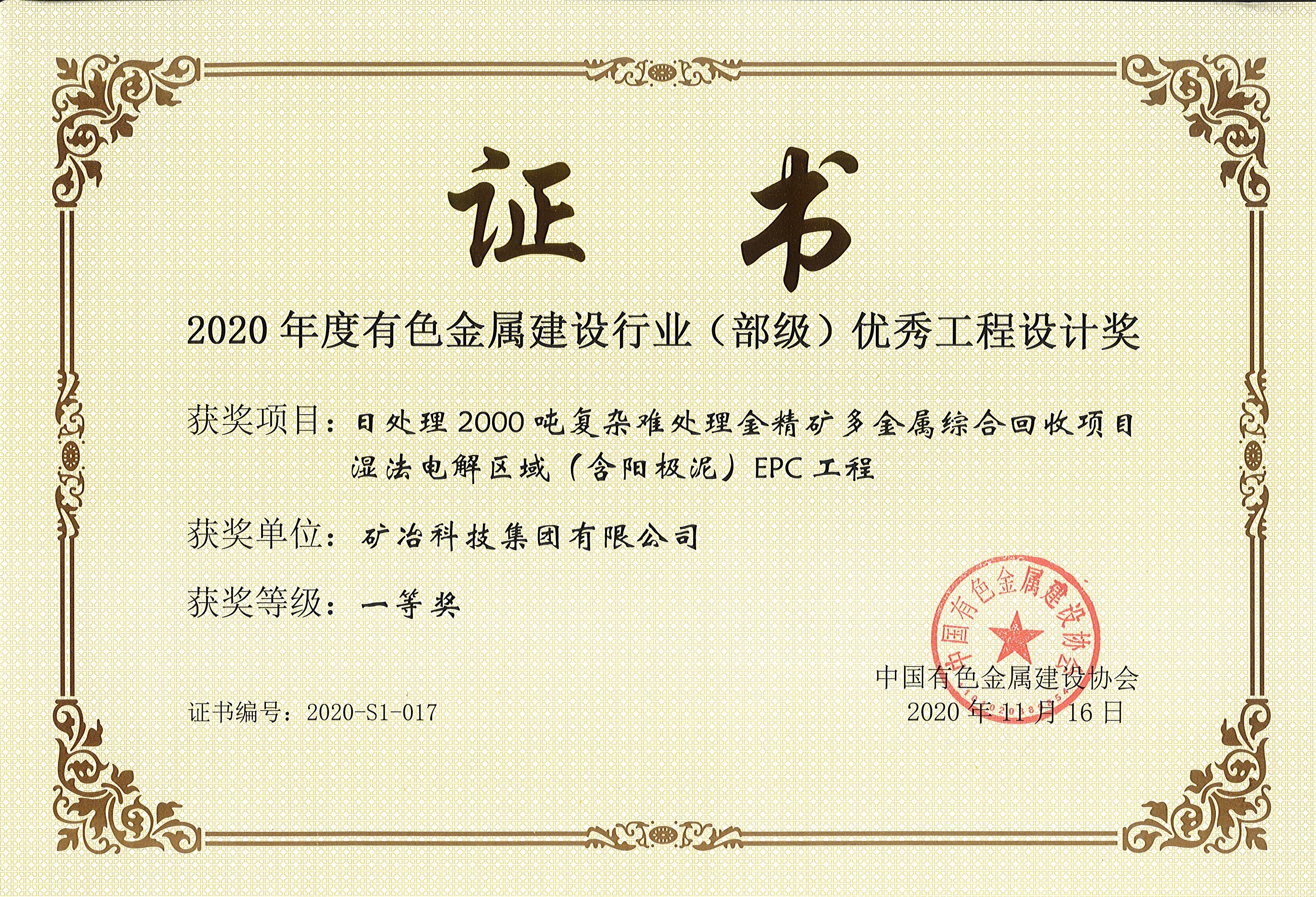日处理2000吨复杂难处理金精矿多金属综合回收项目湿法电解区域(含阳极泥)EPC工程