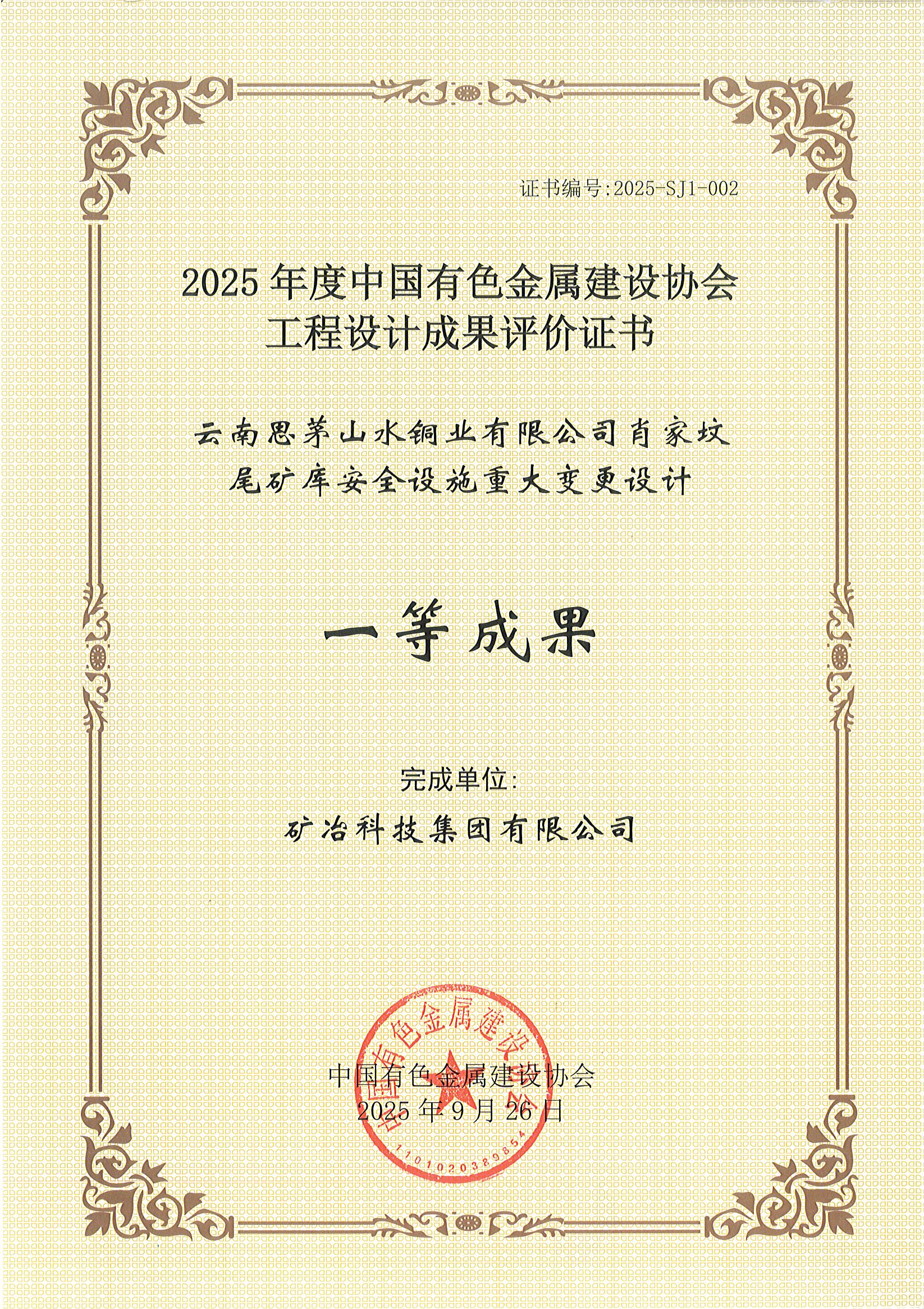 云南思茅山水铜业有限公司肖家坟尾矿库安全设施重大变更设计