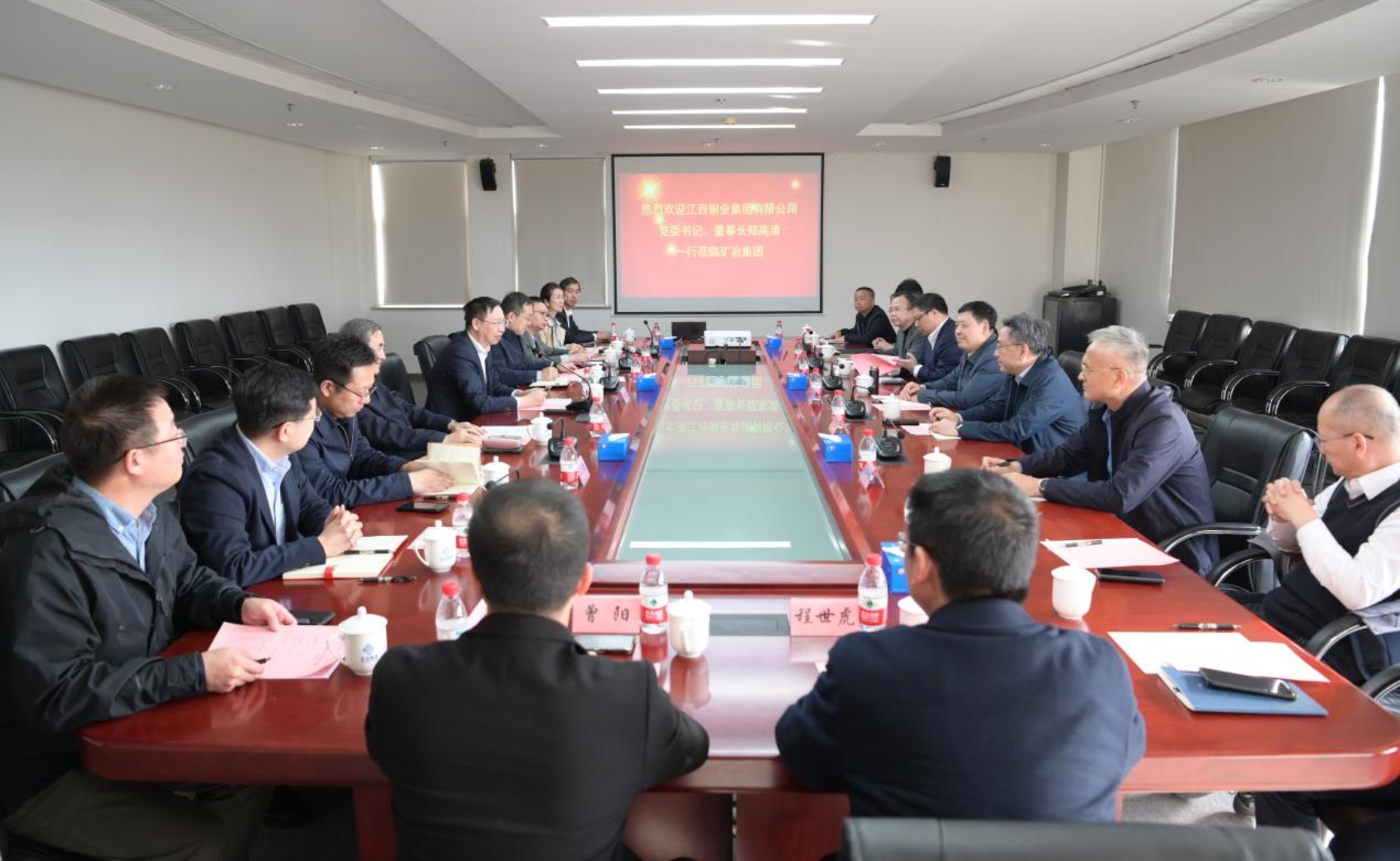 3月27日,OD(中国)官方党委书记、董事长韩龙在集团研发中心会见江铜集团党委书记董事长郑高清,双方就进一步深化合作交流座谈。中国工程院院士、集团首席科学家沈政昌,集团党委副书记、总经理王晓亮,江铜集团党委副书记、副董事长、总经理周少兵参加座谈。